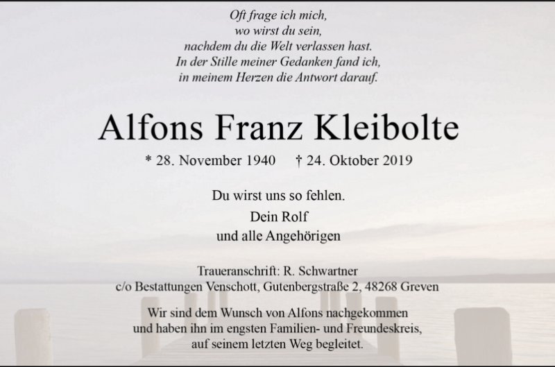 wir wünschen Ihnen von Herzen viel Kraft, dass Sie Menschen um sich haben, die Ihnen in dieser schweren Zeit beistehen und Halt geben. Zusätzlich können Sie auf dieser Gedenkseite Erinnerungen teilen und so das Andenken gemeinsam wachhalten.