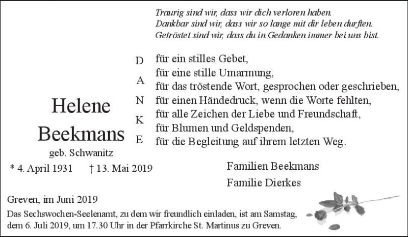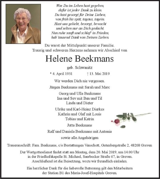 Helene Beekmans geb. Schwanitz