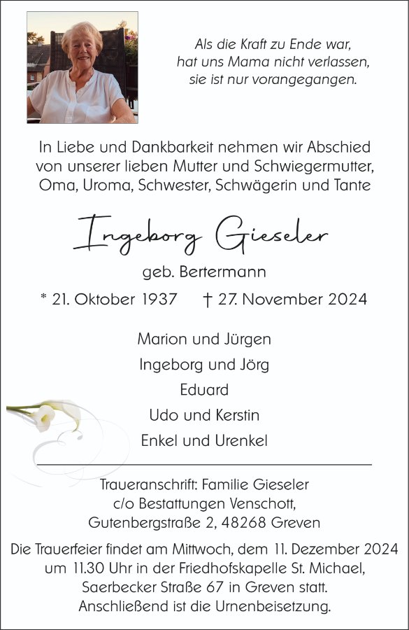 wir wünschen Ihnen von Herzen viel Kraft, dass Sie Menschen um sich haben, die Ihnen in dieser schweren Zeit beistehen und Halt geben. Zusätzlich können Sie auf dieser Gedenkseite Erinnerungen teilen und so das Andenken gemeinsam wachhalten.
