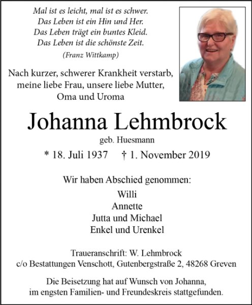 geboren am 18. Juli 1937 in Lengerich gestorben am 1. November 2019 in Münster