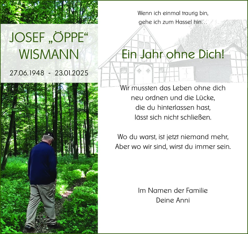 Liebe Anni, es ist schwer den Menschen an seiner Seite zu verlieren. Ich wünsche dir die Kraft. Denke oft an die schönen Zeiten auf dem Hof. 16 Jahre habe ich dort gelebt. Ich werde Öppe in Erinnerung behalten. Stillen Gruß Martina