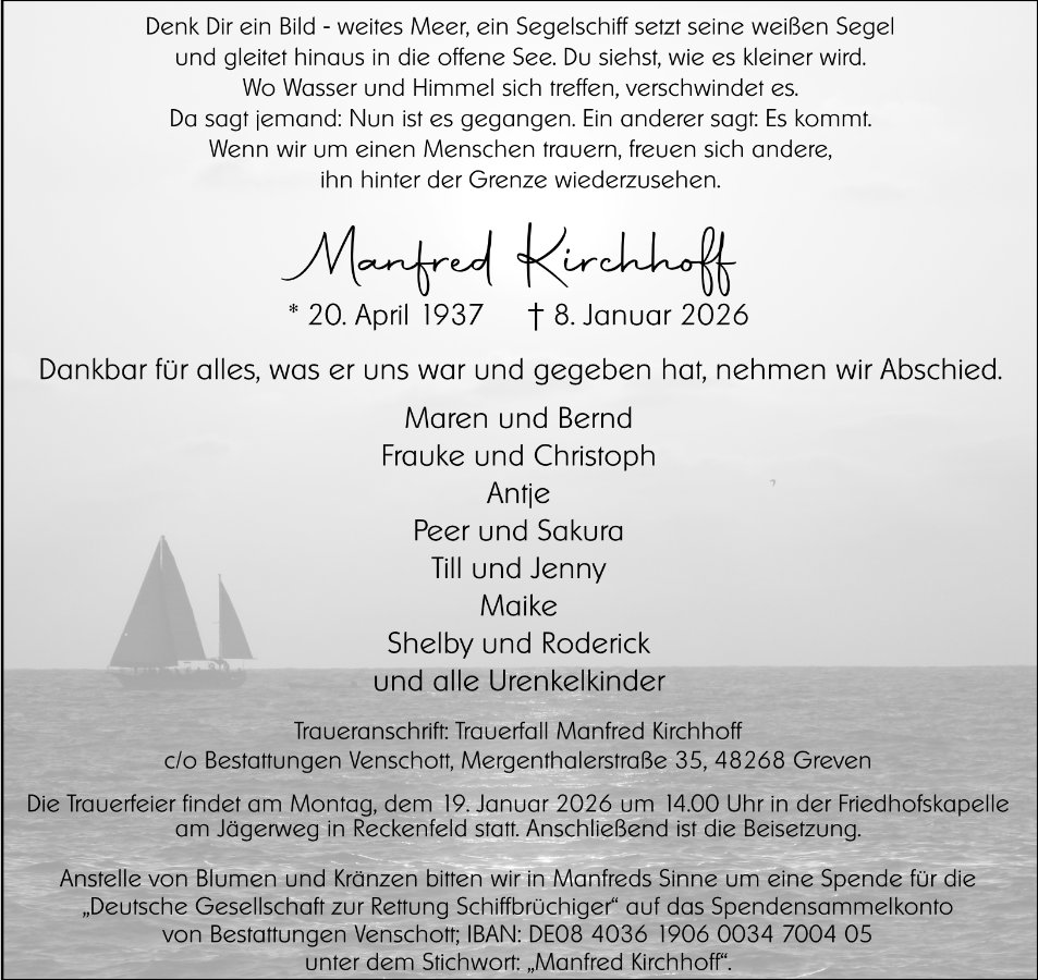 und gleitet hinaus in die offene See. Du siehst, wie es kleiner wird.