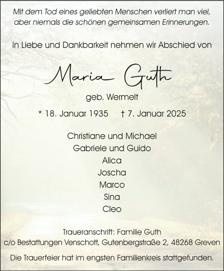 geboren am 18. Januar 1935 in Kirchspiel Schöppingen gestorben am 7. Januar 2025 in Greven
