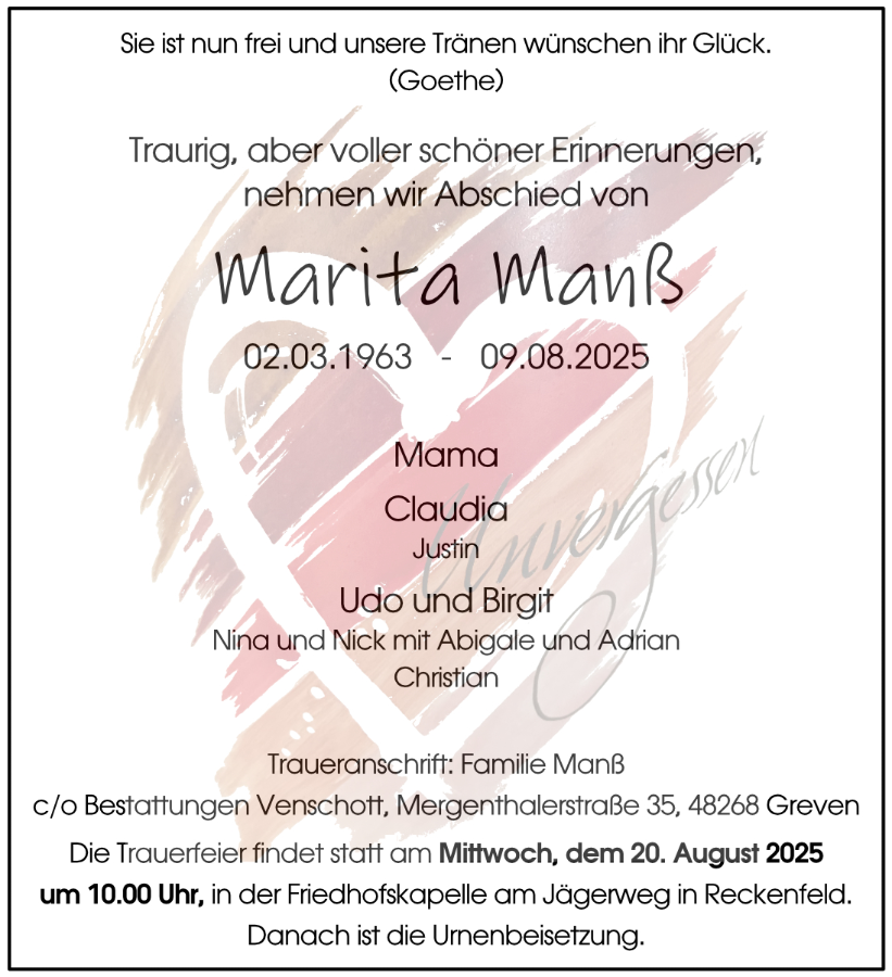 We are lighting a candle for Marita as she makes her way to heaven to join her dad. Both of us have fond memories of Marita and we’re lucky enough to spend quality time with her last year in Germany. Marita you have always been an inspiration to us from the day you were born. Now you are laid to rest we will keep those memories with us forever 🧡 ❤️ xx
