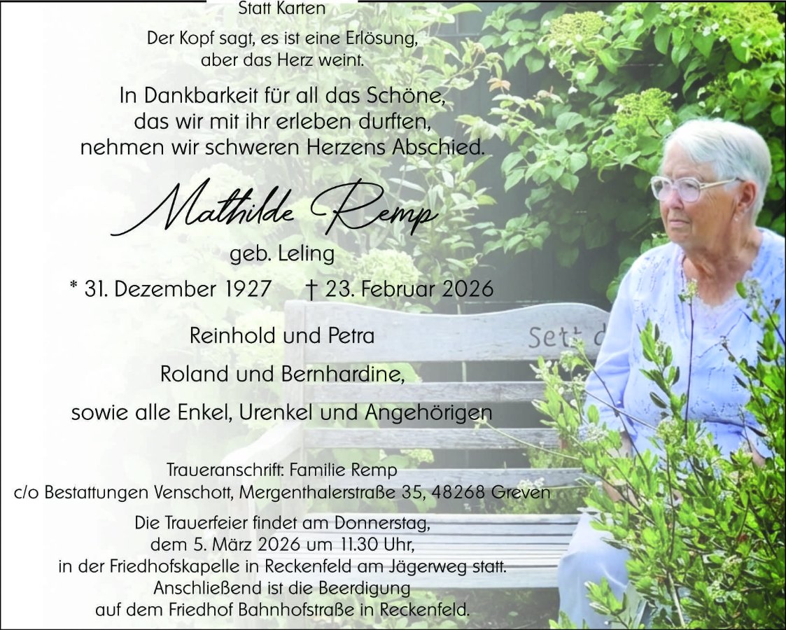 Wir sind für sie da Oma, verlass dich auf uns, du darfst jetzt ruhen, du darfst jetzt den Frieden genießen.