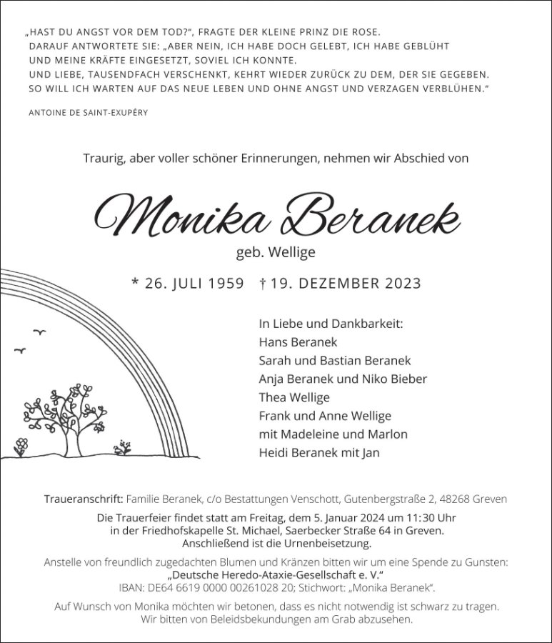 vom ersten Moment unseres Kennenlernen mochte ich dich sehr. Du warst immer positiv, lustig und hast alles Neue mit Neugier auf das Abenteuer angegangen. Deine schwere Krankheit hast du so bewundernswert ertragen, trotzdem alles Mögliche mitgemacht, dank auch durch deinen fürsorglichen Mann, der dir so viel ermöglicht hat. Deine Kraft hat deine Familie stark gemacht.
