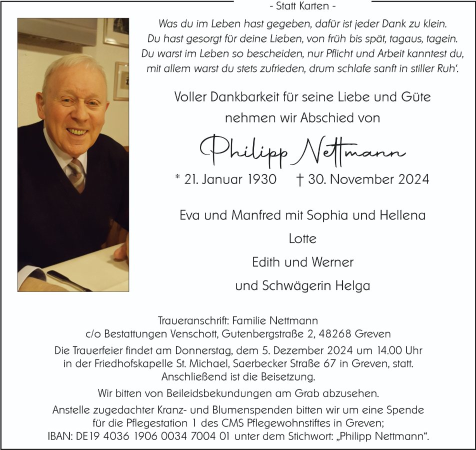 Du warst im Leben so bescheiden, nur Pflicht und Arbeit kanntest du,