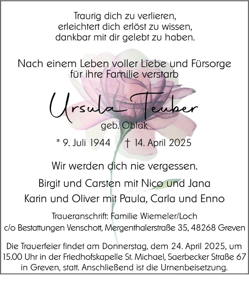 geboren am 9. Juli 1944 in Greven gestorben am 14. April 2025 in Greven